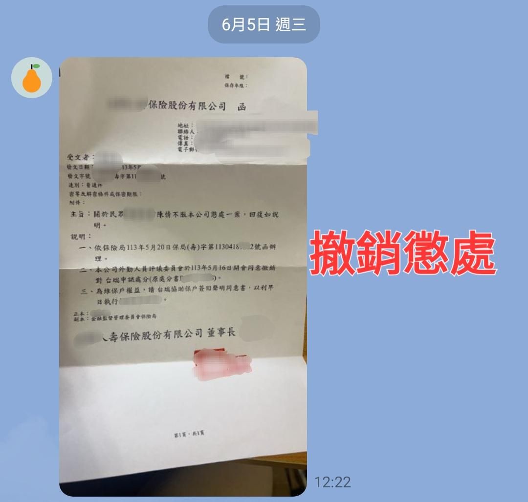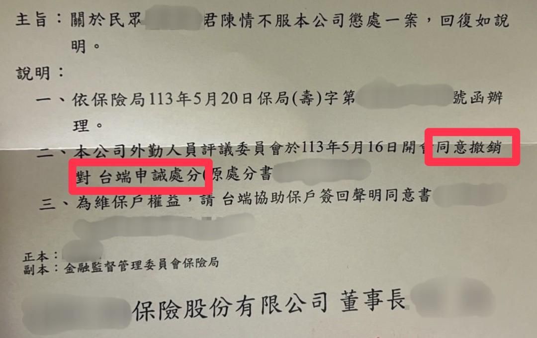 【圖】保險公司同意撤銷懲處公文真人真事故事改編