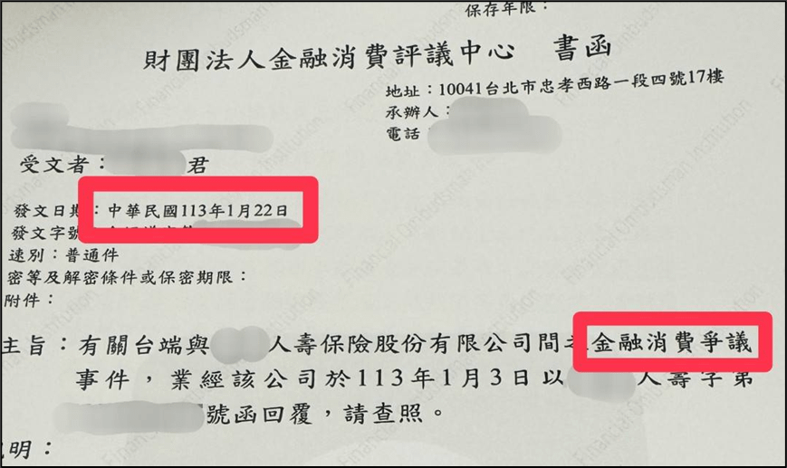 【圖】申訴信「公司的立場很明確!」保險公司的代表冷冷地說,「根據條款,生存保險金只能給付給被保險人本人。」