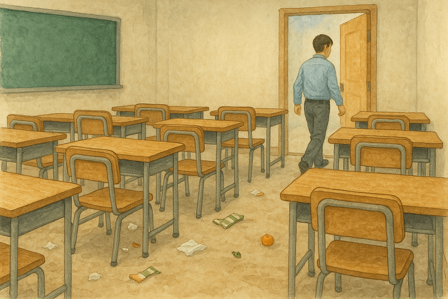 第二天我特別注意了一下,在每一節下課都在走道走動,果然地上開始有人掉(丟)了垃圾或紙屑,當事人也許有意無意、知情或不知情,旁邊的人有人撿起、有人視若無睹。