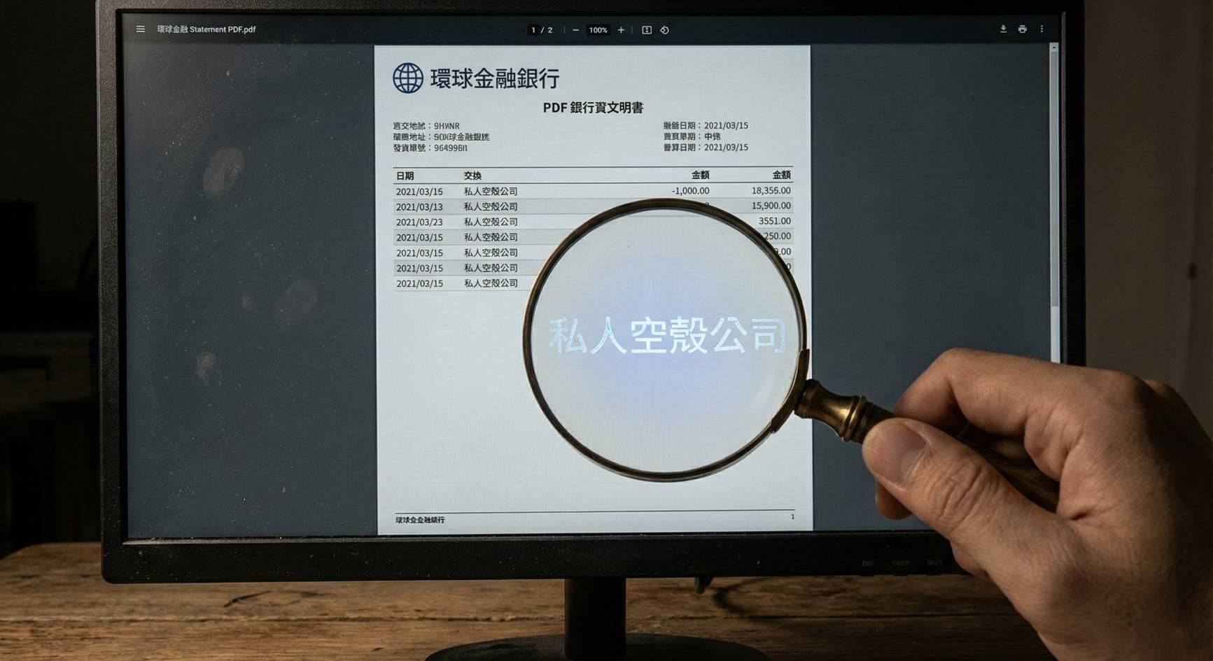 為了掩人耳目,他們甚至竄改 PDF 對帳單,將私人公司名稱的字體顏色改為「白色」(與背景融合),讓查帳人員肉眼完全看不見,這是極其惡劣的文書偽造。