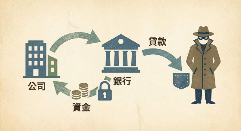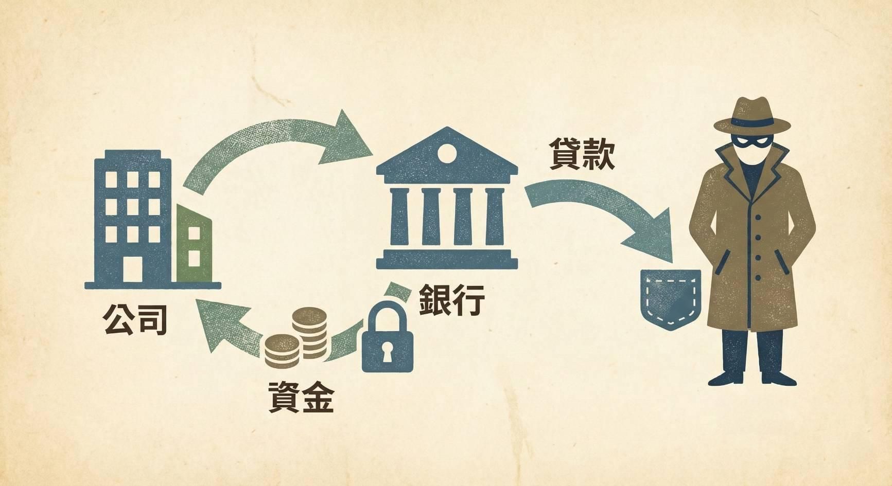 1. 質押公司資產借現金 ➔ 2. 海外洗錢 ➔ 3. 買下公司土地 ➔ 4. 徹底榨乾