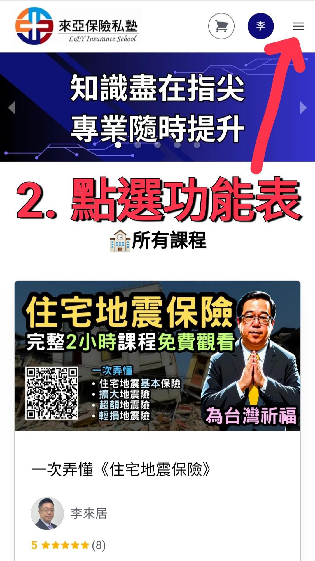 登入成功後,請點擊右上角的個人頭像或選單圖示(三條線),展開功能選單。