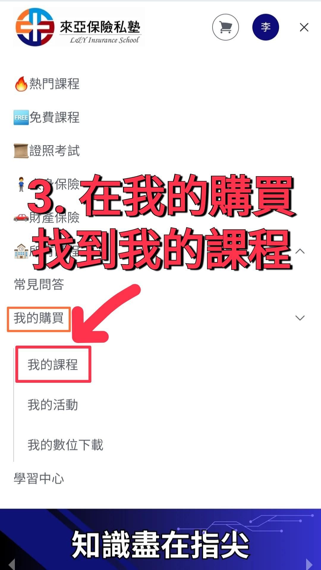 3️⃣ 在左邊的選單中「我的購買」找到「我的課程」