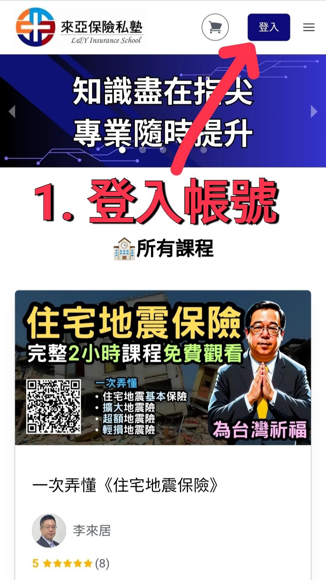 1️⃣ 首先從右上角登入您的帳號